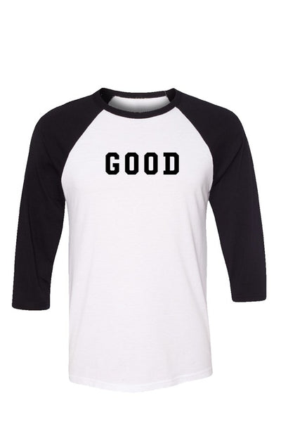 Step up to the plate, sports enthusiasts, and prepare to knock it out of the park with the The GOOD Baseball Tee – a retro sensation that's about to become the MVP of your wardrobe! Crafted in the style of a classic baseball jersey with contrast 3/4 sleeves, this tee isn't just clothing; it's a statement, a symbol of being GOOD at sports and GOOD at life.