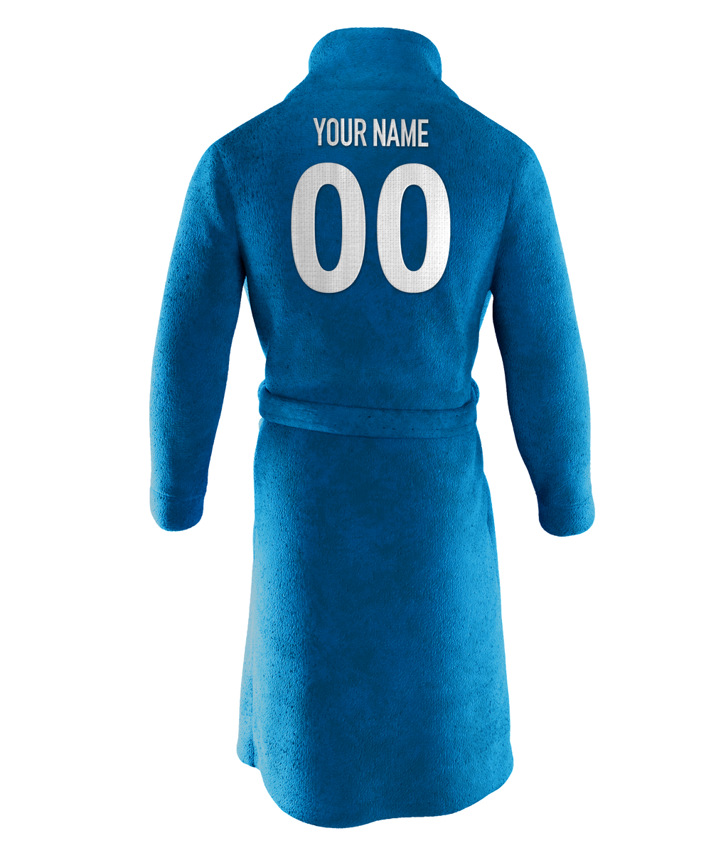 Requested by professional athletes and pro locker rooms, our officially licensed, premium SportRobe comes in official team colors with our Gameday Grade™ team logo, numbers, and lettering twill patchwork, professionally stitched on. This first-of-its-kind product is inspired by the quality of a gameday jersey, born for the pre and post-game.