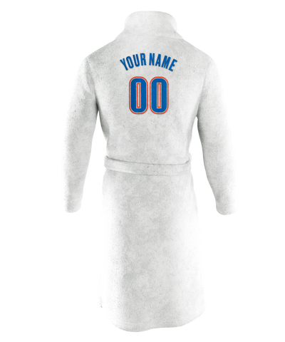 Requested by professional athletes and pro locker rooms, our officially licensed, premium SportRobe comes in official team colors with our Gameday Grade™ team logo, numbers, and lettering twill patchwork, professionally stitched on. This first-of-its-kind product is inspired by the quality of a gameday jersey, born for the pre and post-game.