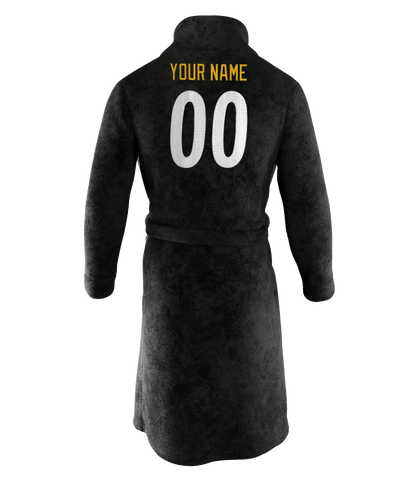 Requested by professional athletes and pro locker rooms, our officially licensed, premium SportRobe comes in official team colors with our Gameday Grade™ team logo, numbers, and lettering twill patchwork, professionally stitched on. This first-of-its-kind product is inspired by the quality of a gameday jersey, born for the pre and post-game.