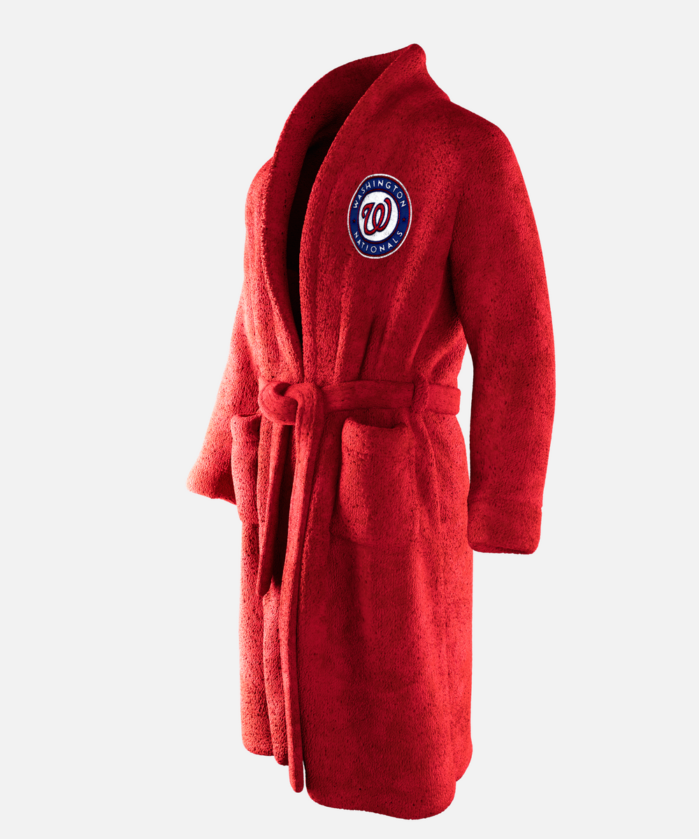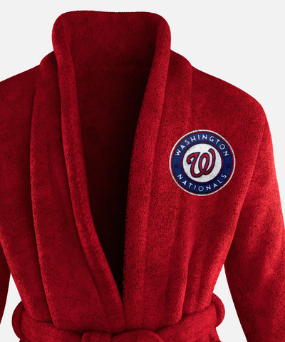 Requested by professional athletes and pro locker rooms, our officially licensed, premium SportRobe comes in official team colors with our Gameday Grade™ team logo, numbers, and lettering twill patchwork, professionally stitched on. This first-of-its-kind product is inspired by the quality of a gameday jersey, born for the pre and post-game.